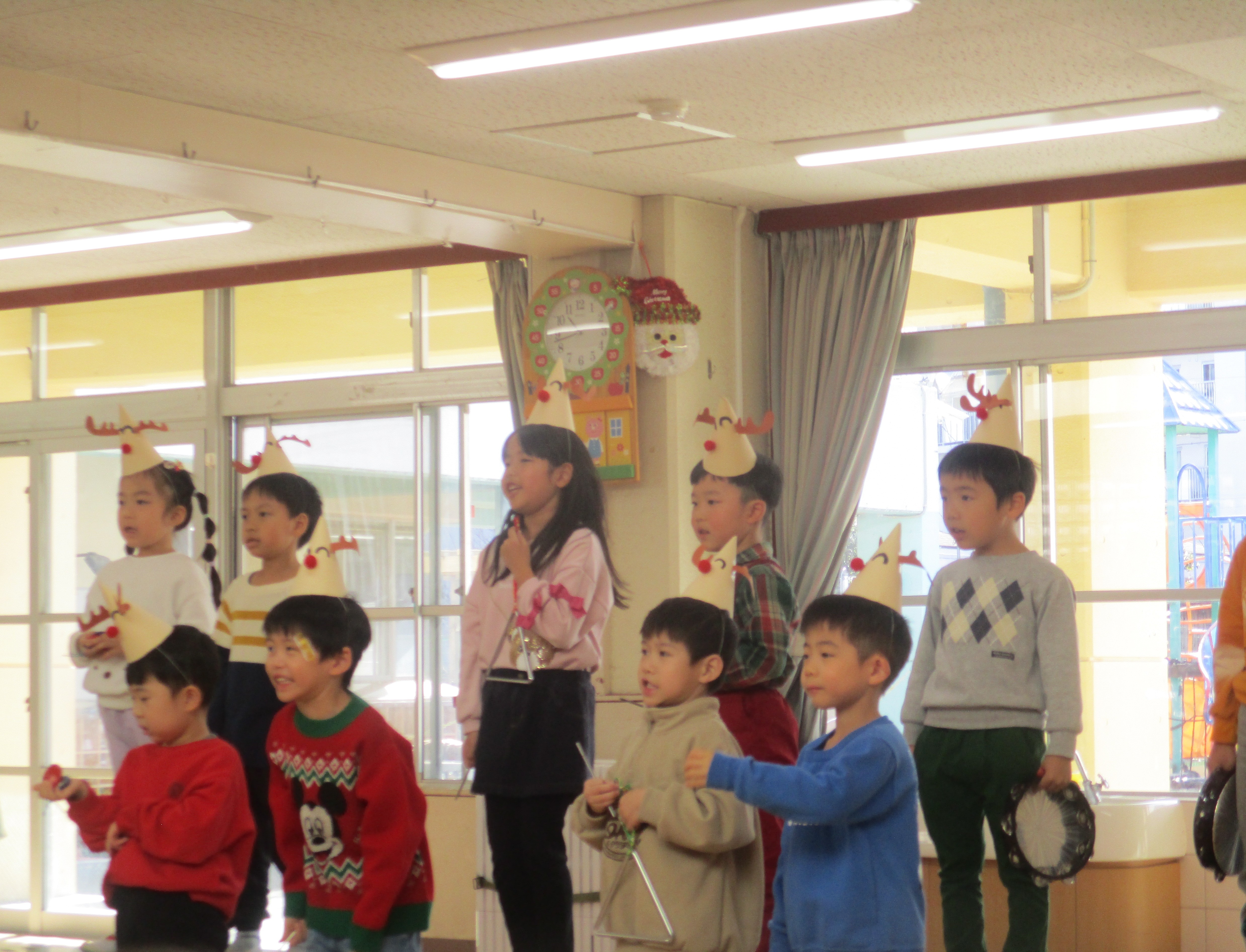 3歳児、4歳児、5歳児組は「表現遊び」、「歌」、「合奏」を披露しました。また、サンタクロースが登場するなど、1日を通して年齢に合ったクリスマスの雰囲気を楽しみました。